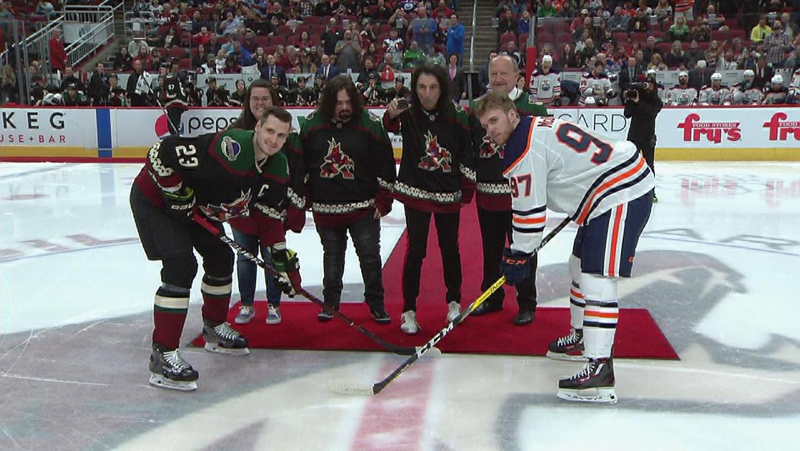 Элис Купер совершил символическое первое вбрасывание шайбы перед матчем НХЛ между Аризона Койотис и Эдмонтон Ойлерс.