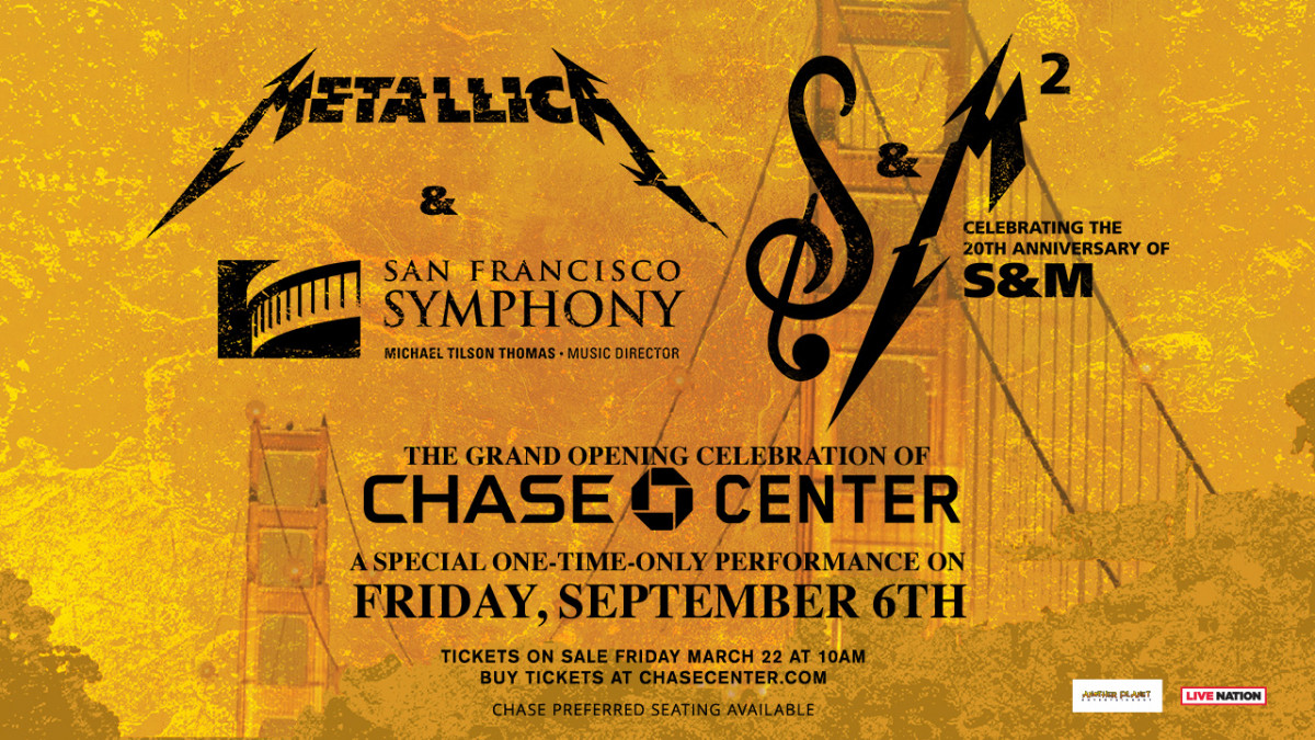 6 сентября Metallica вместе с симфоническим оркестром Сан-Франциско выступят на арене Chase Center в пригороде Сан-Франциско. Это выступление станет церемонией открытия площадки вместимостью 18.000 зрителей – далее на ней планируется проводить игры клуба НБА Голден Стэйт Уорриорс.